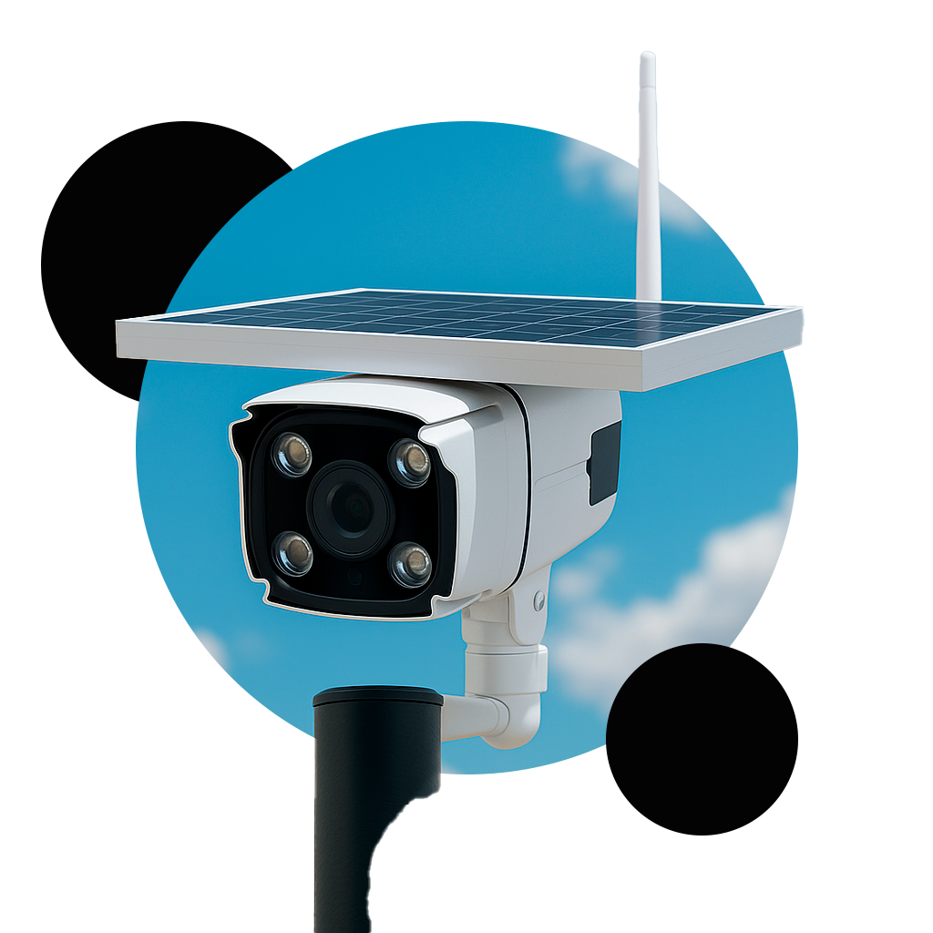 Instalamos as câmeras em local estratégico e seguro, geralmente a 10 metros de altura, garantindo visão total do projeto e proteção do equipamento.